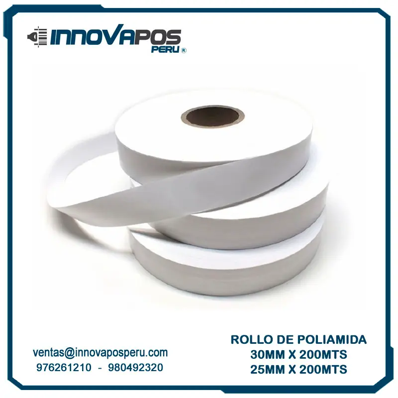 Rollos de cintas de poliamida 30mm x 200mts etiqueta textil.